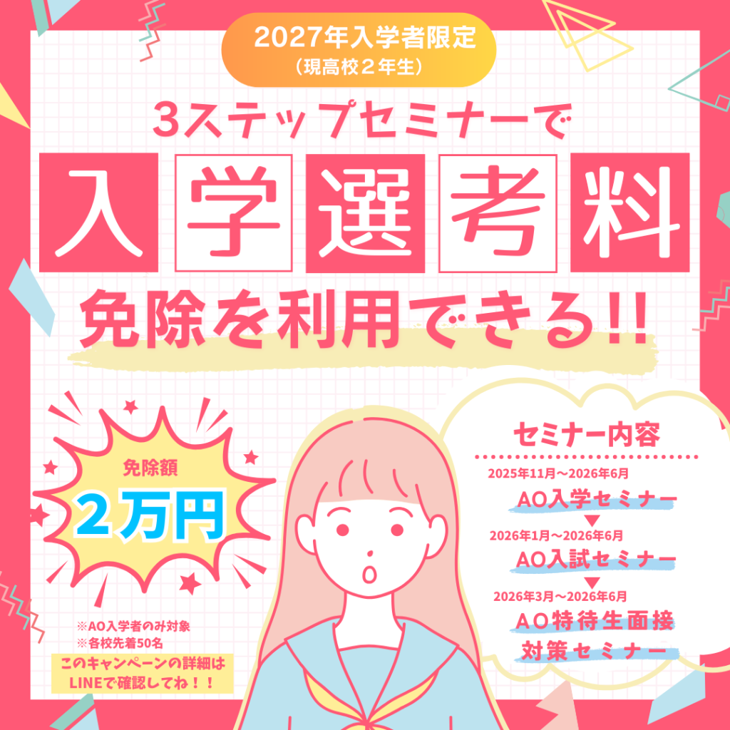 • 2027年度入学生向け、入学選考料免除特典のある『AOセミナー』実施中!